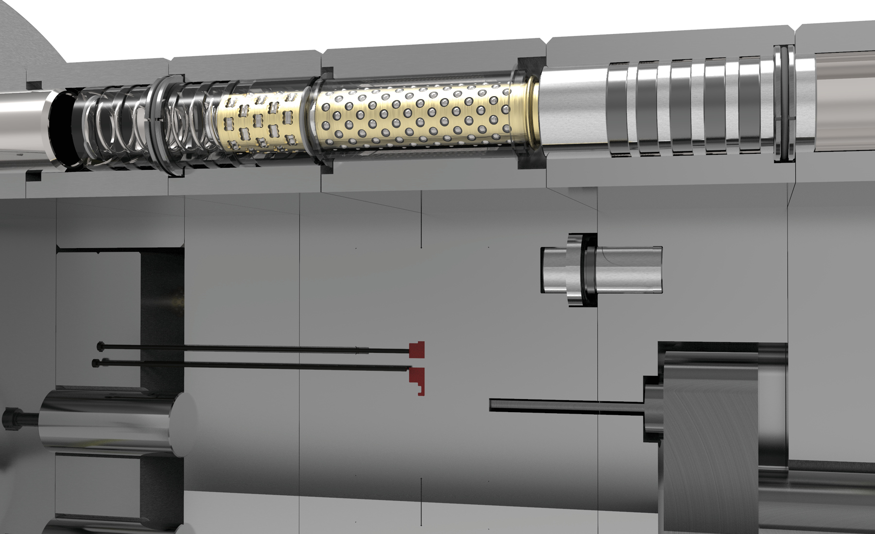 Gerade Auswerferführungen für den Dauerlauf sollten mit steifen und leicht abwälzenden Wälzkörperführungen ausgestattet sein. Aufgrund der spielfreien Arbeitsweise kann ein Abkippen des Auswerferpaktes verhindert werden. Dadurch fahren die Auswerfer nicht unkontrolliert vor und verursachen Abdrücke am Spritzling.